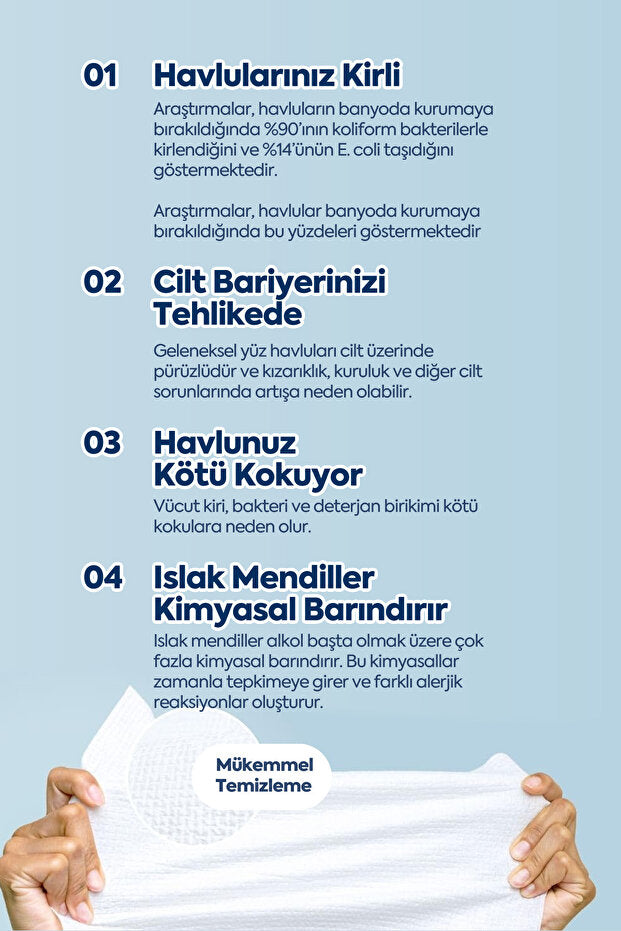 Araştırmalar, geleneksel yüz havlularının bakteriler ve kimyasallarla dolu olabileceğini gösteriyor.