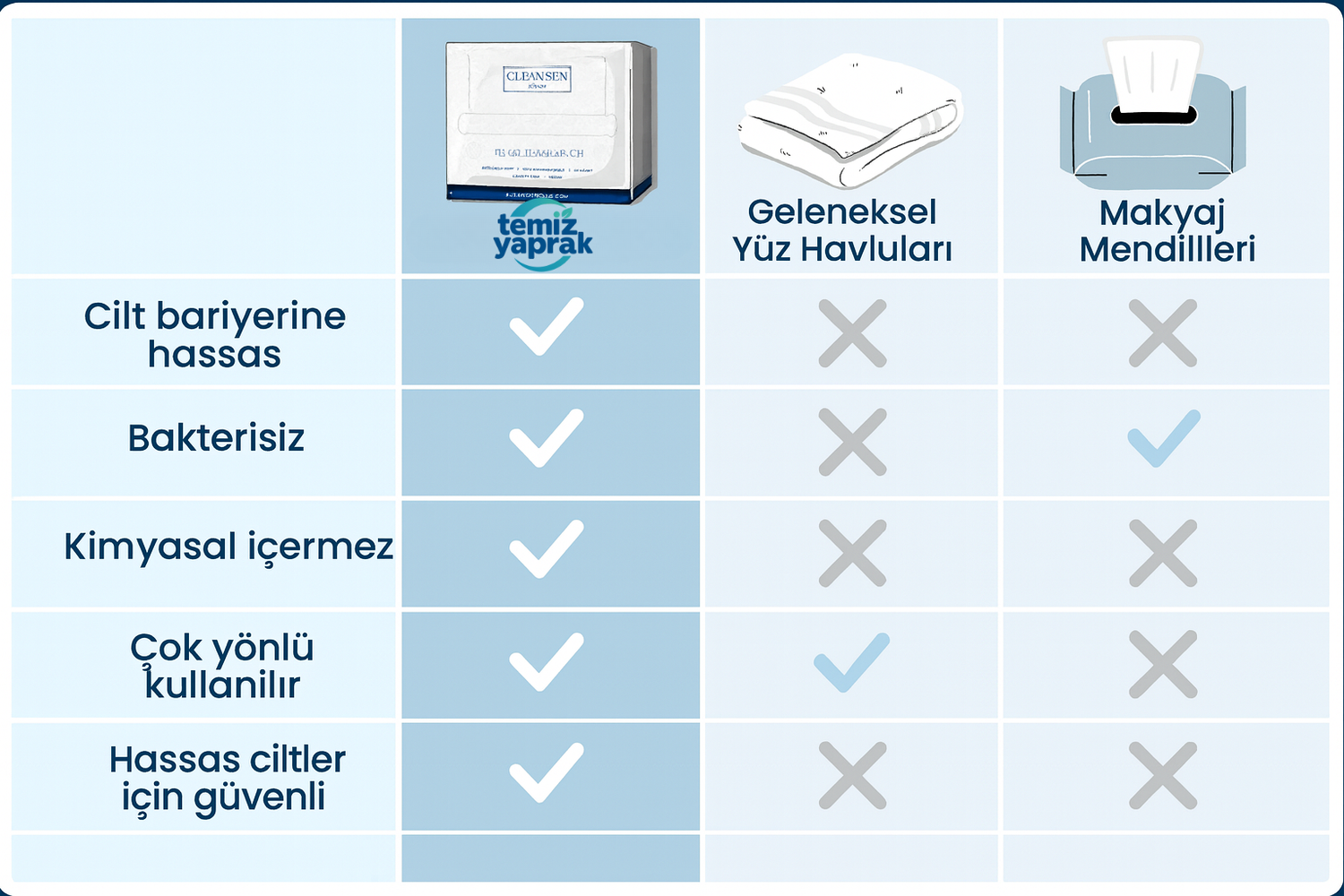 Temiz Yaprak, %100 doğal ve tek kullanımlık yapısıyla bu riski ortadan kaldırır — cildini her kullanımda taze, hijyenik bir şekilde korur.